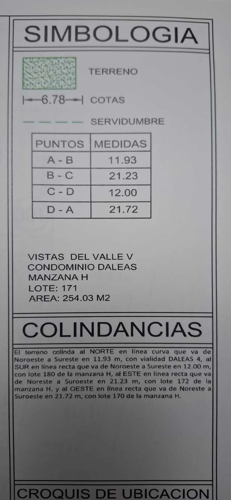 Al este 21.23 m2 con lote 172 de la manzana H